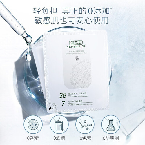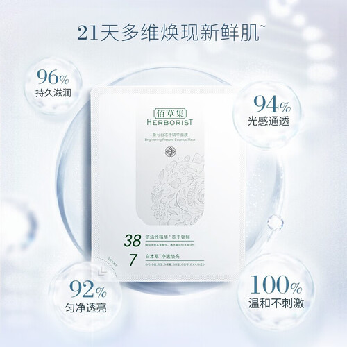 融入了新七白冻干透亮精华原液研制,精华浓缩度高,敷在脸上比较容易吸收,适合肌肤状态差以及面试急救人士使用。