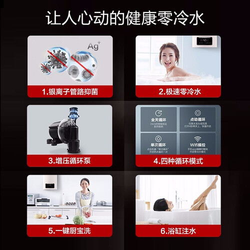 WiFi智控设计,可以在手机上调整温度与模式,使用方便快捷,不受距离限制。具有强劲增压循环泵,在高楼也可以有澎湃的热水。