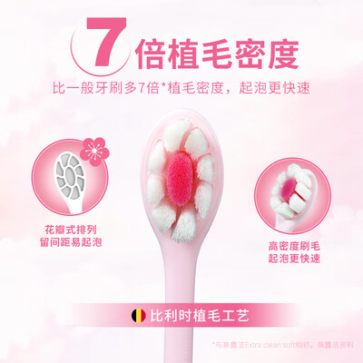 采用贴心刷头设计,可深入口腔清洁,搞定顽固的牙垢。具有7倍植毛密度,起泡的能力更好,清洁效果更显著。