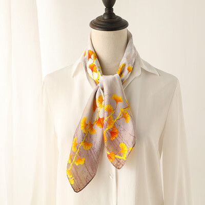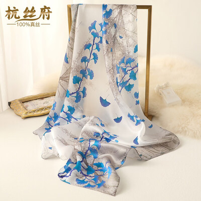 杭丝府悠悠银杏蓝色气质丝巾