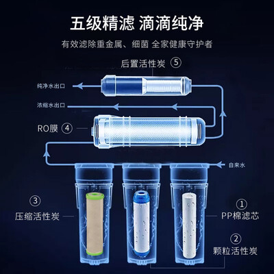 五级精滤,有效滤除重金属、细菌,滴滴纯净,守护全家饮水健康。后置活性炭滤芯,有效吸附异味,纯水清醇可口。