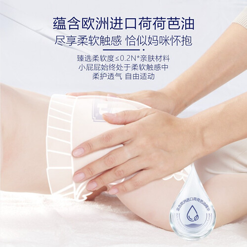 采用薄护适动专利芯体,透气性大大提升,小屁屁尽享干爽。三层防漏设计,全方面防止漏尿,宝宝怎么活动都不怕。