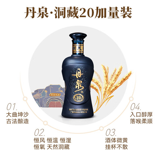 选用颗粒饱满的高粱、小麦酿制白酒,酒体色泽如琥珀,晶莹诱人。散发浓郁酱香,入口细腻甘爽,余味悠久。