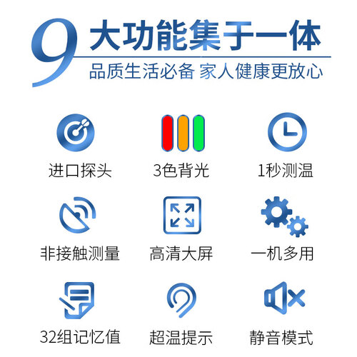 采用精密的进口探头,响应十分灵敏,带来更精准的测量效果。三色背光高温提示,读取直观性更强,体温状况一目了然。