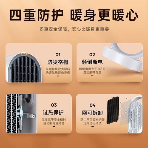 高聚集PTC陶瓷发热体+双核高速涡轮,具有一秒速热的能力,宝宝洗澡再也不怕冷。配备高分子防烫格栅,无光无火更安全。