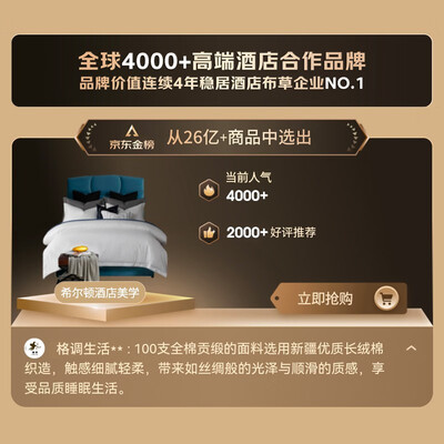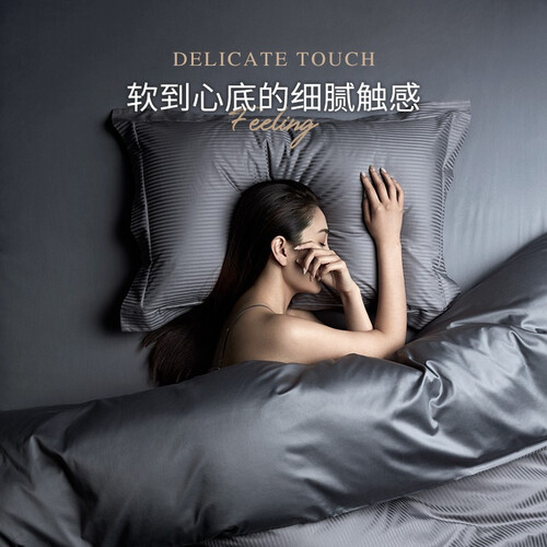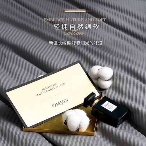 100支全棉贡缎的面料选用新疆优质长绒棉织造,触感细腻轻柔,带来如丝绸般的光泽与顺滑的质感,享受品质睡眠生活。