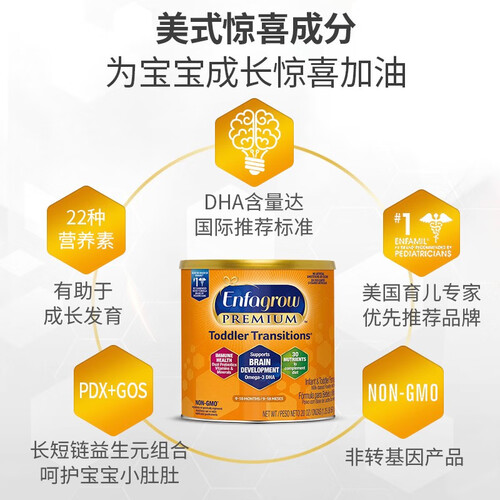 蕴含长短链益生元成分,促进肠道消化,提高营养吸收力,让小肚子更舒适。源自美国圆罐原装进口的品质,安全有保障。