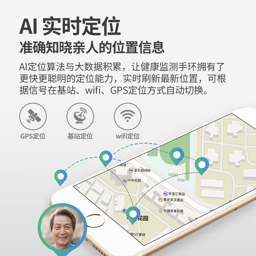 AI实时定位技术,拥有快捷准确的地位能力,能准确知晓亲人的位置信息。采用专业级防水技术,防水效果好,满足日常佩戴。