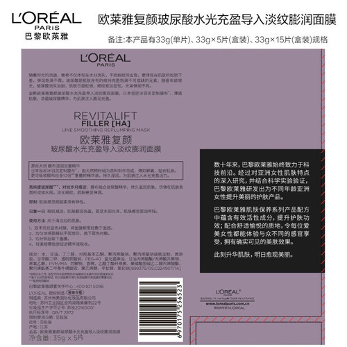 欧莱雅 复颜玻尿酸水光充盈面膜