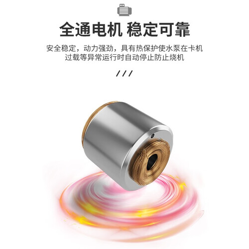 精工高强度中轴,耐腐蚀、高稳定性、使用寿命长。稳定可靠的电机,具有热保护,使水泵在卡机过载时自动停止,防止烧机。