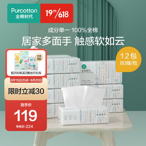 全棉时代 纯棉加厚抽纸