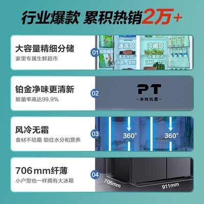 风冷无霜的保鲜模式,减少内部结霜烦恼,保持温湿度均衡。应用抗菌保鲜技术,营造健康舒适的保鲜环境,家居使用更放心。