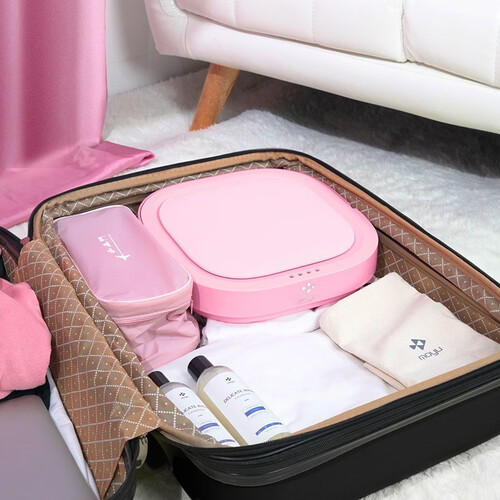 折叠式洗衣机,便于收纳,可出差旅行携带。机身底部可收纳排水管,使用后易收纳。搭配防水按键,避免进水发生安全隐患。