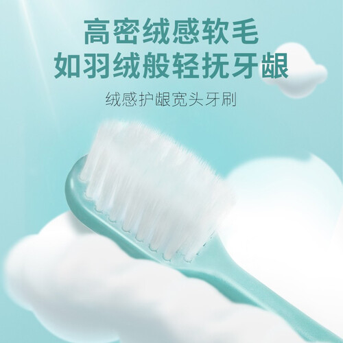 高密度绒感软毛,触感柔软舒适,帮助按摩牙龈,舒缓压力。超纤细刷毛,可深入牙龈沟清洁,减少牙周病。