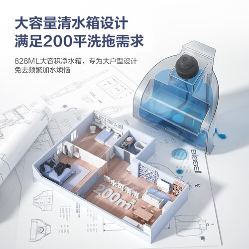 活水清洁系统加持,带来强劲的动力,快速吸附干湿垃圾有效避免阻塞。拖把可以自动清洁,无需拆洗。
