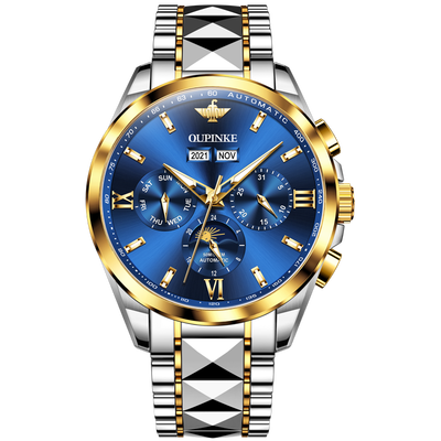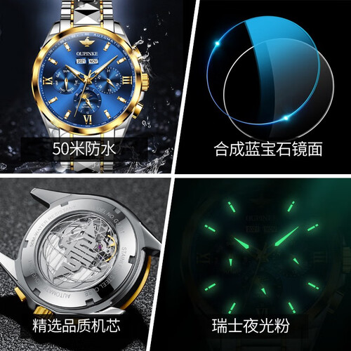 内置全自动机械机芯,性能稳定走时精准,使用寿命长。双眼小表盘设计,丰富视觉效果,便于掌控时间。