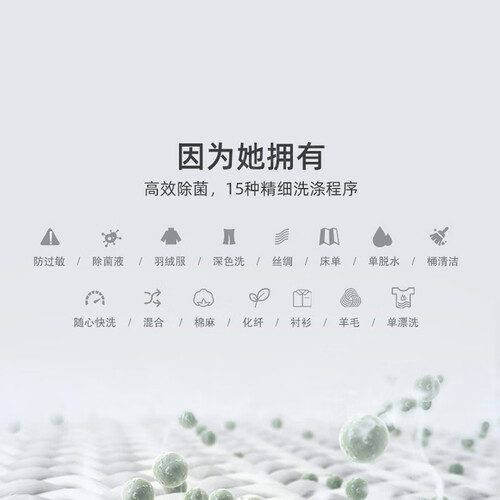 9公斤的大容量,就连床单和窗帘也能洗,让你更加放心。且带有智能除菌功能,保证健康,呵护全家人的体验。