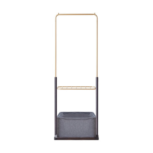 胡桃木色落地衣帽架,清晰醒目,简约大气,适配多种环境。搭配分区收纳设计,可挂衣,可存放包包、杂物,满足不同需求。