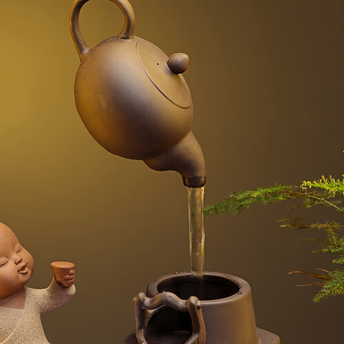 禅意流水的造型韵味凝神,营造出悠然自得的生活状态,充满高雅的气息。人物摆件面部雕刻清晰可见,栩栩如生。