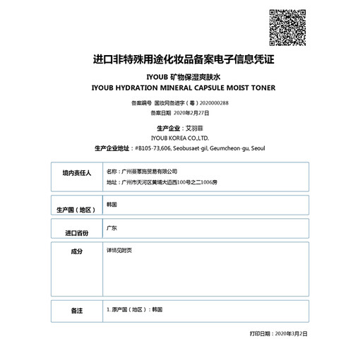 IYOUB 八重玻尿酸爽肤水