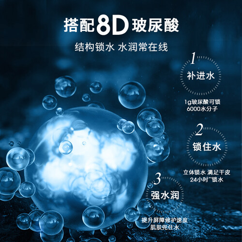 添加八重玻尿酸成分,带来8倍的补水能力,可24h时刻补水。蕴含15种矿物质能量,高吸收且高渗透,肌肤更水润。