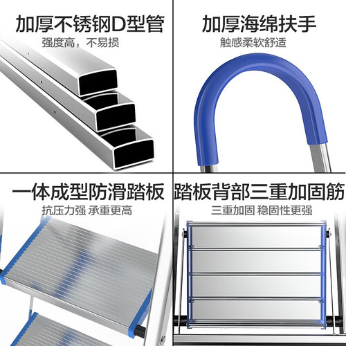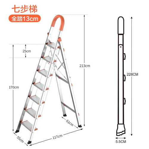 梯子整体选用不锈钢材质塑造而成,厚实耐用,具有较强的承重能力,不易开裂。踏板加宽设计,防滑性佳,踩踏更加安全。