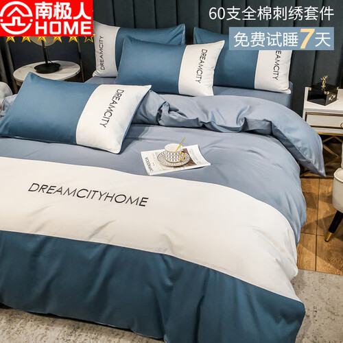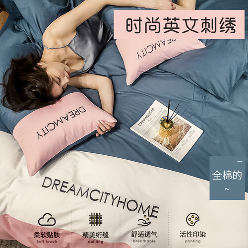 高密全棉面料,手感柔和细腻,适合四季使用。表面添加英文刺绣图案,展现精湛的刺绣工艺,突出轻奢风格。