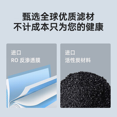 采用进口RO膜过滤水中杂质与有害物质,家人放心饮用。并且不添加水箱,即滤即饮,有效避免二次污染。
