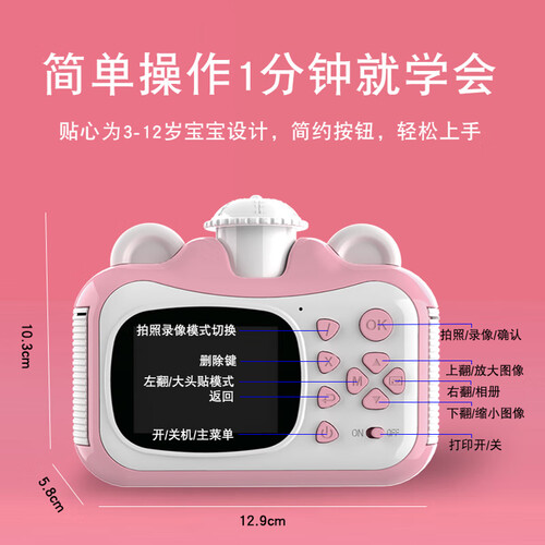 电池采用1200毫安的大容量,外出使用更加续航耐用。即拍即得,一键打印。内置搭配一百八十度广角镜头,可拍摄更大范围景物。