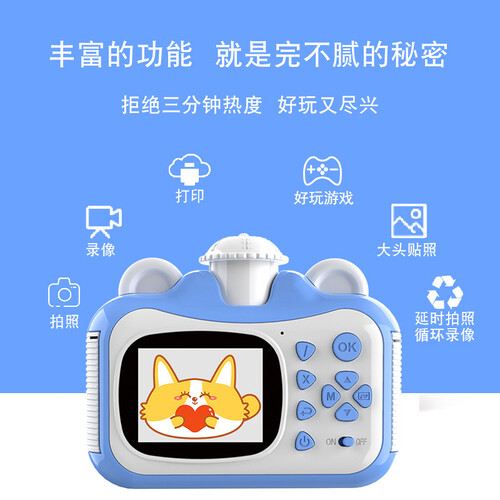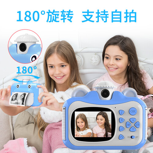 拥有一个可一百八十度旋转的,摄像头可以拥有不同角度拍摄需求。内有趣味创意大头贴,增添拍摄乐趣,采用机身无棱角的设计。