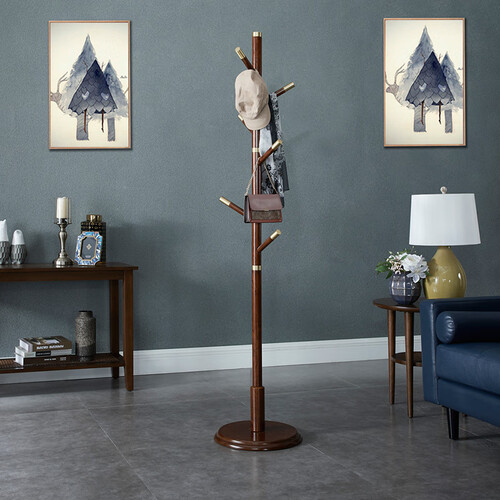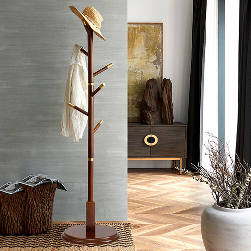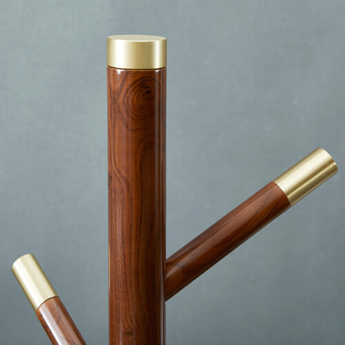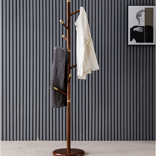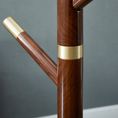 经典的实木框架,结合黄铜配件加持,衣帽架稳固利落颇具优雅格调。交叉错落的挂枝,悬挂衣物简单不单调。