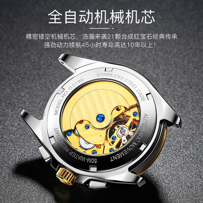 镂空飞轮设计搭配立体表盘,每个细节都很精美,彰显出大气风范。内置全自动机械机芯,带来强劲动力,走时准确。