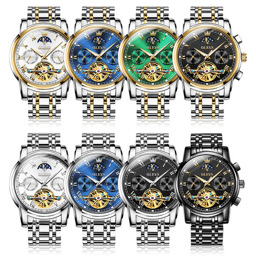 表带优选精钢材质打造,坚固耐用,生活佩戴无惧磕碰,减少断裂现象。内置机械机芯,稳定运行,易于掌握时间动向。