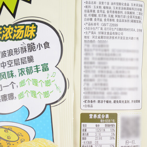 采用独特的四层成型工艺,提升酥脆感,入口更为过瘾。精选优质玉米粉制作,口感酥脆鲜香,满满味蕾挑剔需求。