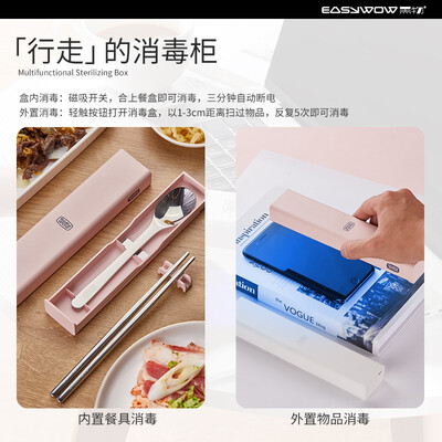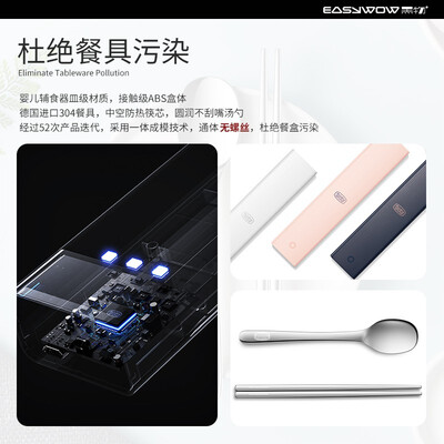 盒身小巧,外出方便携带。采用食品级ABS材质,健康环保,内置深紫外线和蓝光杀菌灯,灭菌率高达99.9%,呵护饮食健康。