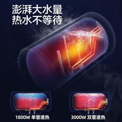 3000W大功率速热,双管加热,无需久等,热水持续供应,澎湃大水量,洗浴更舒适。智能预约,提前预约,告别等待加热时间。
