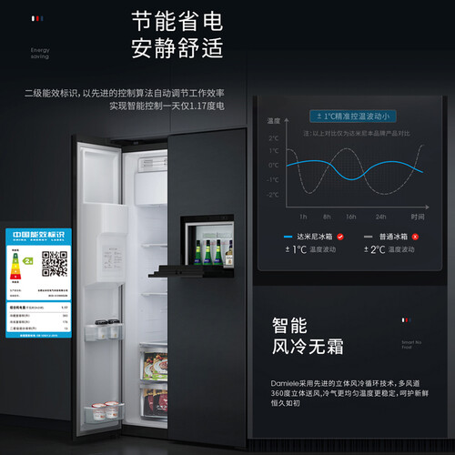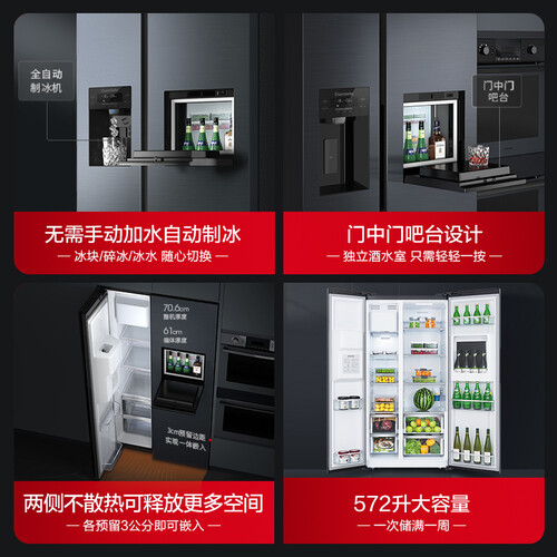 支持全自动制冰,冰块和碎冰能随心切换,酷夏宅家制作透凉饮品。具有AI智慧调节功能,减少温差,食材新鲜可口。