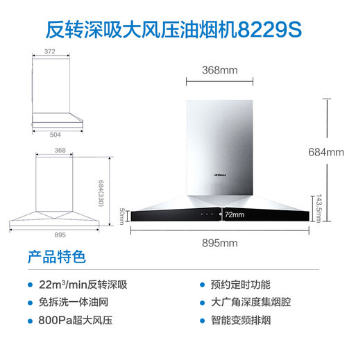 大吸力的电机,能够在油烟产生的源头吸收油烟,保证厨房干净清新的环境。自清洁设计,自动清除油污。