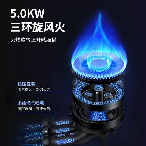 符合国家一级能效,有效节能省电又省钱。梅花九头样式的九腔炉头,高密度猛火包围燃烧,火焰稳定,不易黑锅。