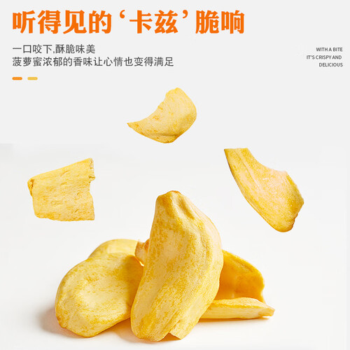 于黄金产地采摘的成熟菠萝蜜果实,人工细心挑选品相饱满的,经由轻加工制作,散发出浓郁的菠萝蜜香,一口咬下去香脆清甜更可口。