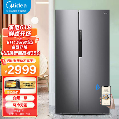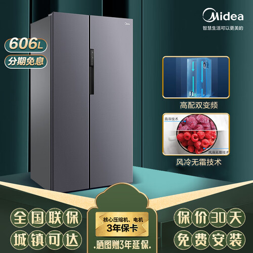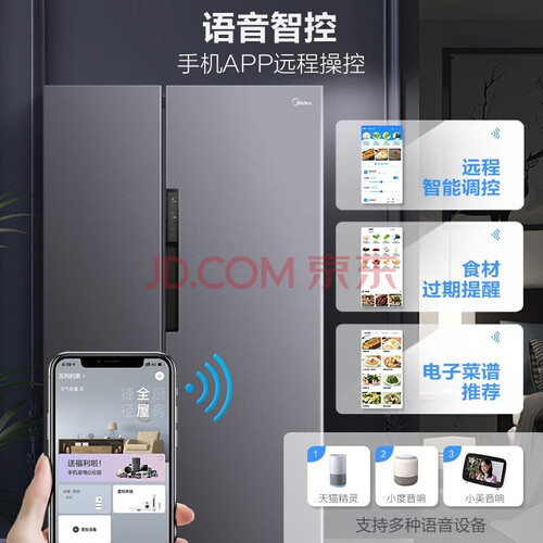 美的铂金净味对开门冰箱