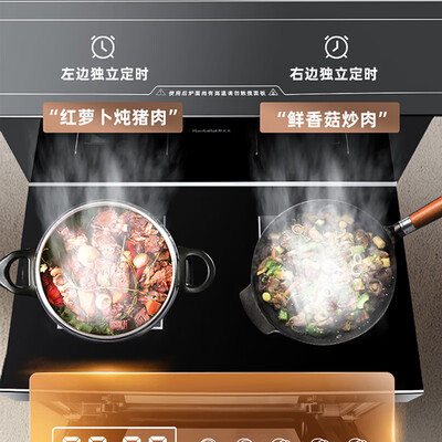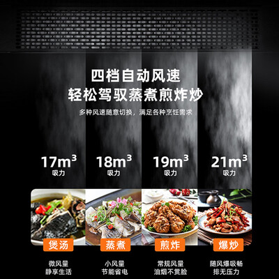 采用四挡风速设计,可以根据需求自由调节,快速排烟不留痕。双灶独立定时功能,定时自动关火,使用更加便捷。