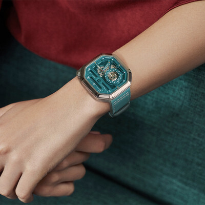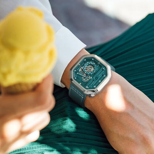 采用人工合成的蓝宝石玻璃表镜材质,拥有很强的透光性,能让您更清晰的辨认时间信息,结合时尚的墨绿色表身,尽显时尚运动风。
