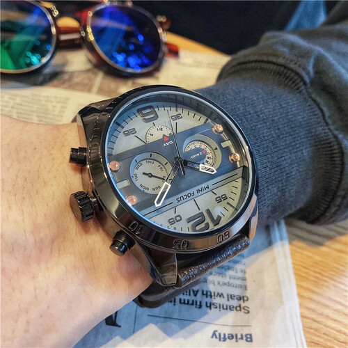 黑色圆盘搭配棕色皮带,风格低调简约,而且不失大气复古魅力,矿物防花玻璃镜面,持久清晰透光,日常读时直观快捷。