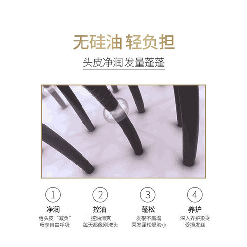深层清洁头皮油脂,去屑止痒,使发根立体蓬松显发量。有效修复烫染后的脆弱头发,强健发丝,让发丝重现光泽亮丽。