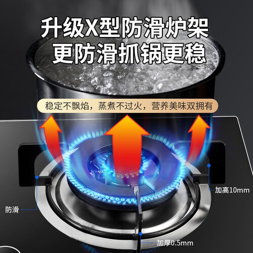 拥有120mm宽屏火力,有效增加了燃烧面积,受热更均匀。拥有刀锋旋火,热量紧贴锅底输出,加热快速,烹饪食材更入味。