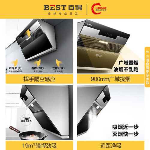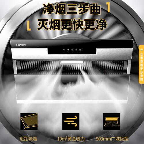 选用智能挥手操控,开机、关机、爆炒挥挥手就能搞定,做菜可以更轻松。并支持3min延时关机,净除余烟不残留,还原清新厨房。
