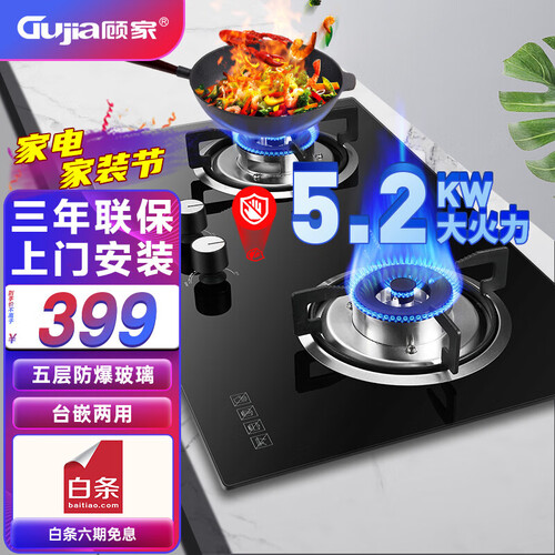 顾家 家用猛火双眼燃气灶