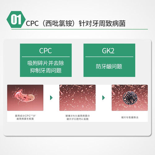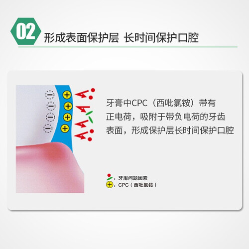 内含清爽薄荷的细小泡沫,更容易深入清洁牙齿健康,持久保持清爽口气。加上CPC成分,能够帮助去除致病菌。