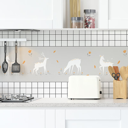 此款贴纸选用清新淡雅的逐鹿图案,风格简约百搭,可提高厨房颜值;采用加厚材质,耐用性更好,久用不变形。